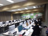 写真は科学技術部員が研究ポスターを作成している様子です。