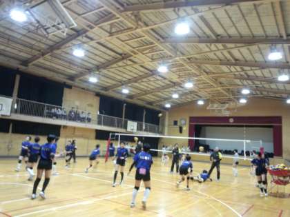 大阪で都道府県対抗全国中学生バレーボール大会が開かれています。今日は、福島県と島根県の代表チームが本校で練習をしています。
