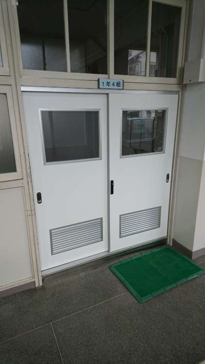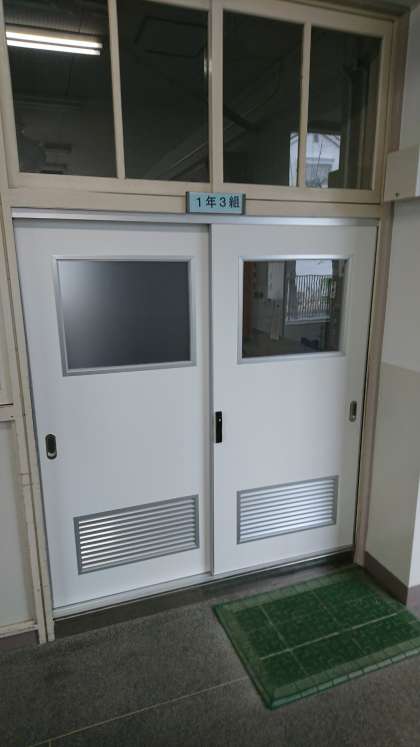 冬休み中に傷みや破損がひどくなっていたプレイルーム1、1年3組、1年4組の扉取替工事を行いました。