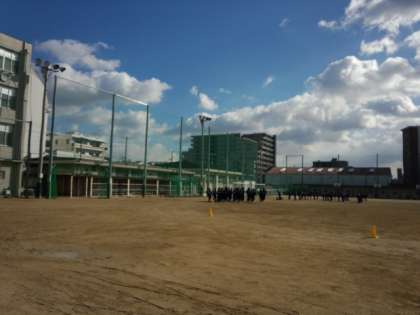 今日は気温も低く、風も吹いていますが、新北島中学校の生徒は元気に体育の授業を受けています。