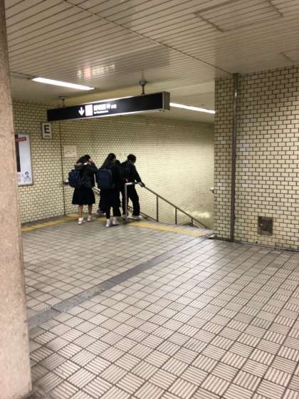 *地下鉄を乗り継ぎ、各班、早速最初の施設に到着しています。今回の校外学習では、各班3つの施設を訪れます。うち、平和学習との関連で、ピースおおさかには全ての班が訪れます。