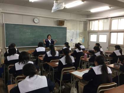 *写真は南港病院、阪急交通の講師の方による講話の様子です。