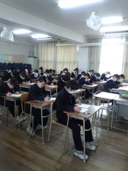 学年末テストの2日目も無事終わりました。1,2年生のみなさんはあと一日頑張ってください。