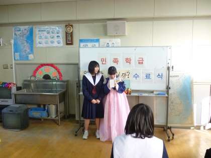 2月26日(月)に民族クラブの卒業式が行われました。恥ずかしながら言葉を述べていました。