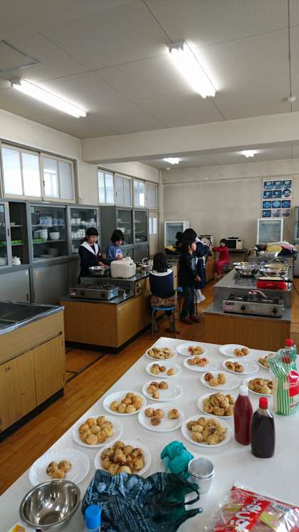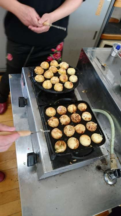 プレイルーム料理会が行われています。たこ焼きを懸命に焼いています。おいしくできたかな。