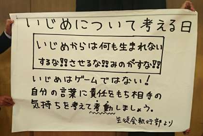 校長先生のお話のあと、生徒会メンバーからもいじめについての話がありました。