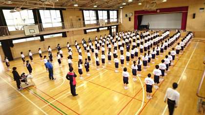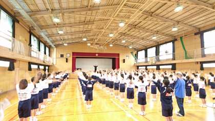 最初は、恥ずかしさからか、声が小さい人もいましたが、行進やラジオ体操のコツを教えてもらい最後には精一杯元気な行進ができました。