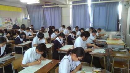 中間テストの開始です。一時間目は国語です。数学、社会と続きます。