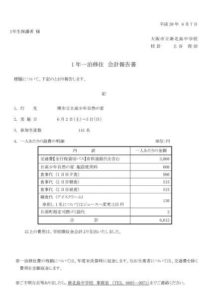 6月2日(土)〜6月3日(日)に実施した一泊移住の費用については、以下のとおりとなりますのでご確認ください。