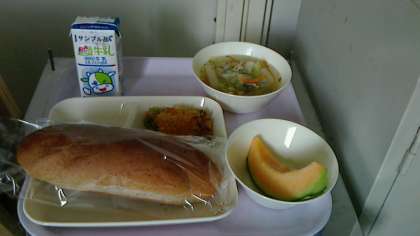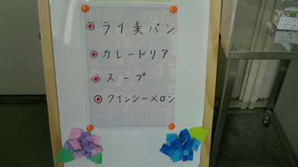 職員室前の献立表には、きれいなアジサイが咲いています。