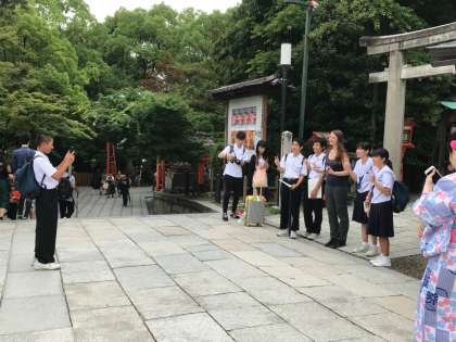 *京都滞在組はもうひと頑張りしています。チェックポイントの1つ、八坂神社で「カルチャレンジ」挑戦中!