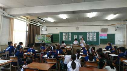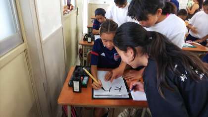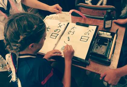 日本の書道の歴史や道具についてなど、スライドを使って書道の紹介をしました。そのあとは、各々好きな字やメッセージを書きました。