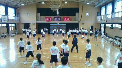 1年生は本日の5・6時間目に学年球技大会を行っています。あいにくの雨で体育館での実施となりましたが、みんな元気いっぱいにドッジボールをしています。写真からは躍動感が伝わりませんが、生徒たちのプレーは元気ハツラツです。