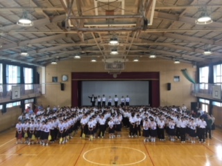 そして、本日の終業式で体育館への感謝の気持ちを込めて、拍手を送り、全体で記念写真を撮りました。