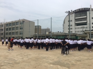 本日6時間目、全校生徒で自衛消防訓練を行いました。