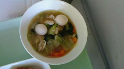 (鶏肉・チンゲンサイ・にんじん・玉ねぎ・キャベツ・うずら卵)
