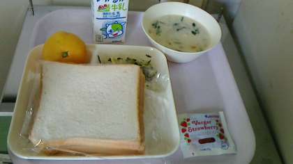 食パン(ストロベリージャム)・牛乳