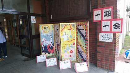 玄関前に一年生の文化祭展示作品
