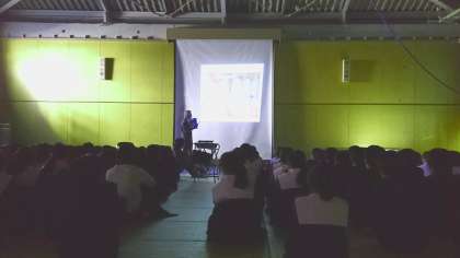 本日5限に体育ホールで、「歯と口の健康教室」を行いました。