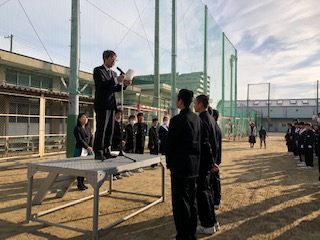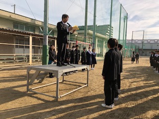 野球部で7ブロックの代表選手に選ばれた4名が表彰されました。