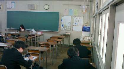 昼過ぎから各高等学校に出願に出ていました3年生は、多くの人が中学校に帰ってきています。帰ってきた人たちは、受験票の確認をしたのち、教室に戻って当日の注意事項を自分でまとめてから帰宅します。すでに、たくさんの人が帰校、帰宅しており、あと10名ほどが戻っていない状況です。出願も終わり、あとは試験の日を迎えるばかりです。2月9日の受験日まで、健康に気をつけて勉強に励んでください。ガンバレ、受験生!