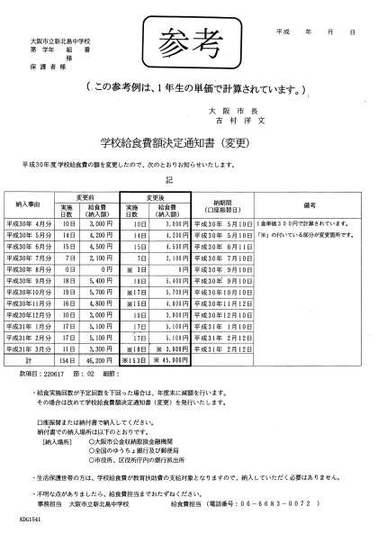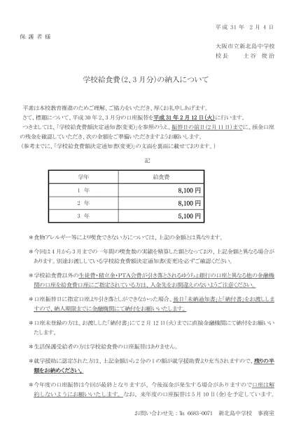 学校給食費の納入について(2、3月分)