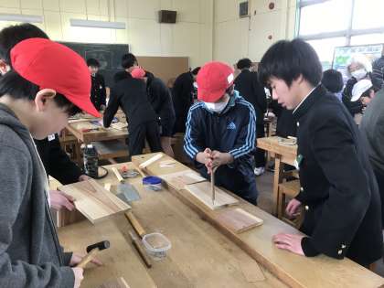 慣れない中学校の校舎での体験、中学生の先輩からの指示を聞きながら少し最初は緊張している様子でした。活動が進むにつれ、コミュニケーションがとれ、楽しんで活動してもらえた人もいたようでした。