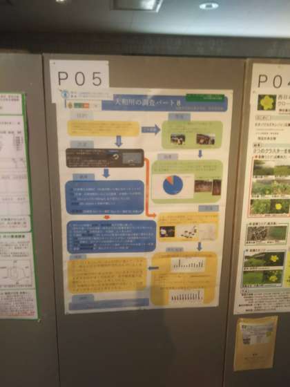 小学4年生から大人まで38の研究ポスターが展示されていました。関西自然保護機構の大会も開かれていたので、多くの自然保護に関係する方に研究を見てもらい、質疑応答で意見交換することができました。あと、中学校や高等学校の研究ポスターを見学して、質問することもできました。