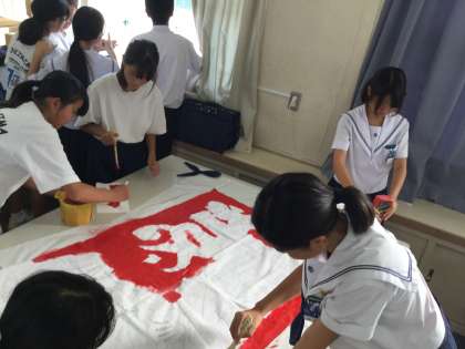3年生のみなさんが1年生の時の学校生活の1ページです。みんなで体育大会の学級旗を描いたこともありました。写真で振り返ってみると、校長先生と一緒に給食を食べたこともあったようです。いろいろな思い出が残っています。