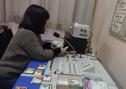 放送室から詠まれるうたに合わせ、勢いよく札を取り合っていました。