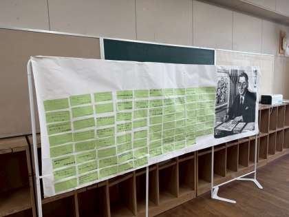 各班で発表したパワーポイント、そしてその読み原稿の展示と、