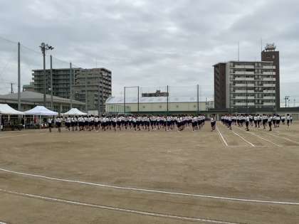 プログラム1番 全校生徒によるラジオ体操です。