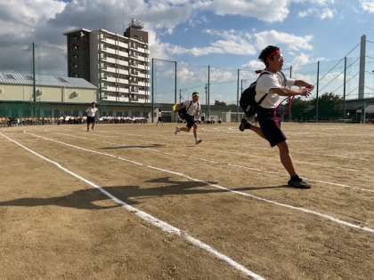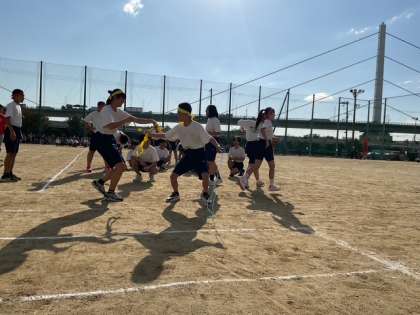 二年生 団体競技「絆で繋ぐ全員リレー」