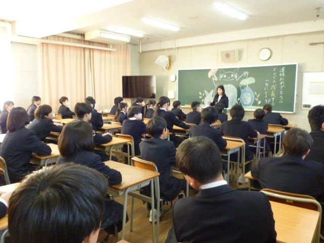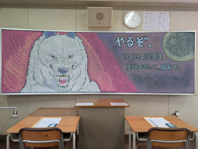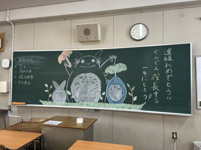 黒板アートで生徒をお迎えしたクラスもありました。
