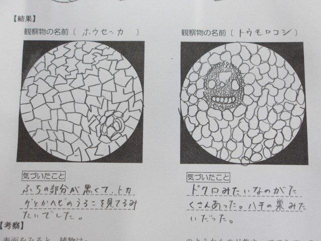 驚きや発見の声が上がっていました。観察した内容をスケッチや記録にまとめることで、