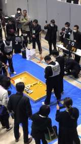 審査員にロボットの工夫した点や長所を伝えました。前日の夜に練習もしっかりしまし...