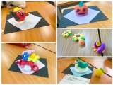 粘土で和菓子を製作中です。 季節をモチーフにしていて、素敵ですね。