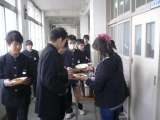 平成27年2月23日(月) 給食 配膳と準備風景です。