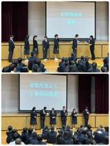 1年生最後の学年集会を行いました。 最初に学級代表が作成したオープニングムービ...