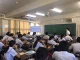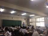 吉永先生の理科の授業です。スチールウールの燃焼です。実験に取り組む真剣な姿が見え...