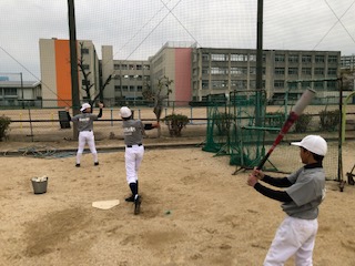 日が暮れ始め、肌寒くなった夕方にも野球部員は一生懸命、素振りに励んでいました!