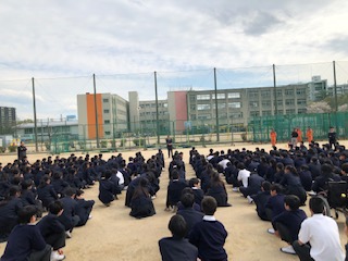 住之江消防署のみなさんのご指導のもと、消火訓練を行い貴重な体験をさせて頂きました。また火災や地震に関しての講話も頂きました。