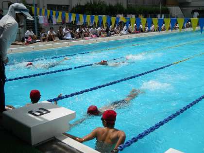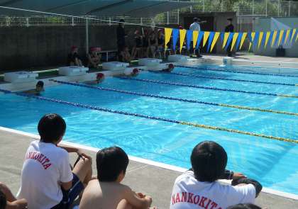 10(水)、晴天に恵まれ絶好のコンディションの中、1年生の水泳大会が行われました。自分の出場種目を頑張るだけでなく、クラスメイトの応援もしっかりでき、楽しそうな顔と明るい声がプールサイドに広がりました。優勝は2組。来年も頑張ろう。