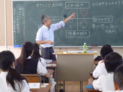 チャートシートやトランプなどを利用して、自分を知るための授業でした。