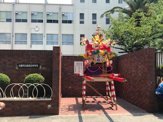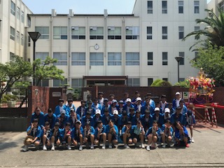 暑い中、交代でみこしを担ぎ、太陽の町町内を練り歩きました。地域への感謝と今後のさらなる発展を祈念して、頑張りました!
