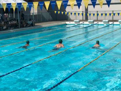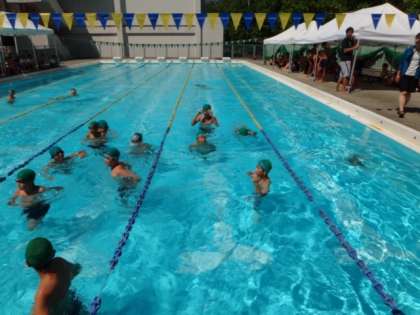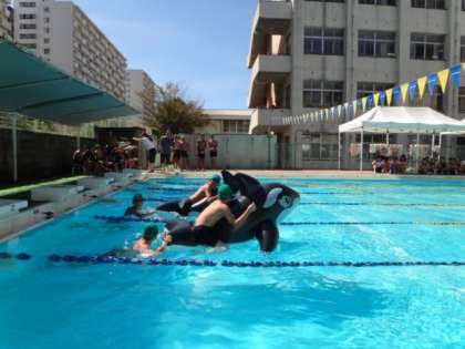 本日、水泳大会が行われました。個人競技やリレー競技などあり、大いに盛り上がりました。また、2枚目の写真は一風変わったイルカ競争で応援にも熱が入りました。