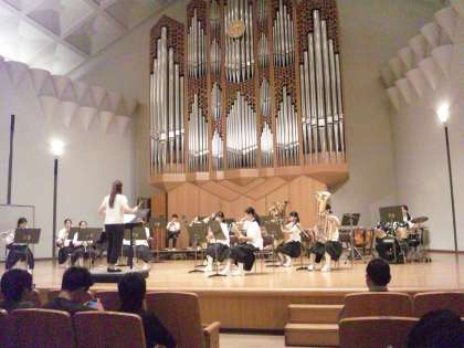 11日(土)、相愛大学で行われた「第12回さざぴー音楽祭」に吹奏楽部が出演しました。パイプオルガンが輝く素晴らしい会場で、「ヤング・マン」「CIRCLE OF LIFE」「IN ALL ITS GLORY」の三曲を演奏しました。