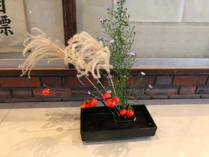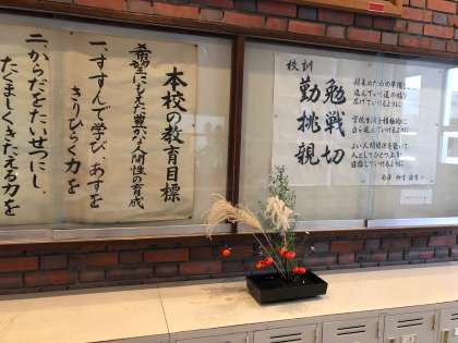 玄関に華道部の作品が置かれています。玄関を通る度に、作品を見て心が落ち着きます。華道部のみなさん、いつもありがとうございます。