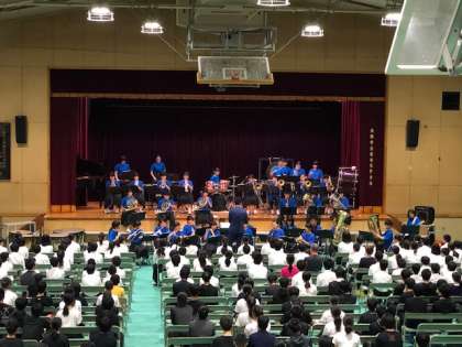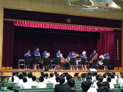 トップバッターは吹奏楽部でした。3年生はこれで引退になります。鑑賞している生徒も含めて1つになる、素晴らしい演奏でした!!