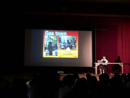 次に海外派遣研修報告が行われました。住之江区海外派遣研修で2週間、カナダに滞在したことを細かく、丁寧に報告してくれました。みなさん、真剣に聞いていました。